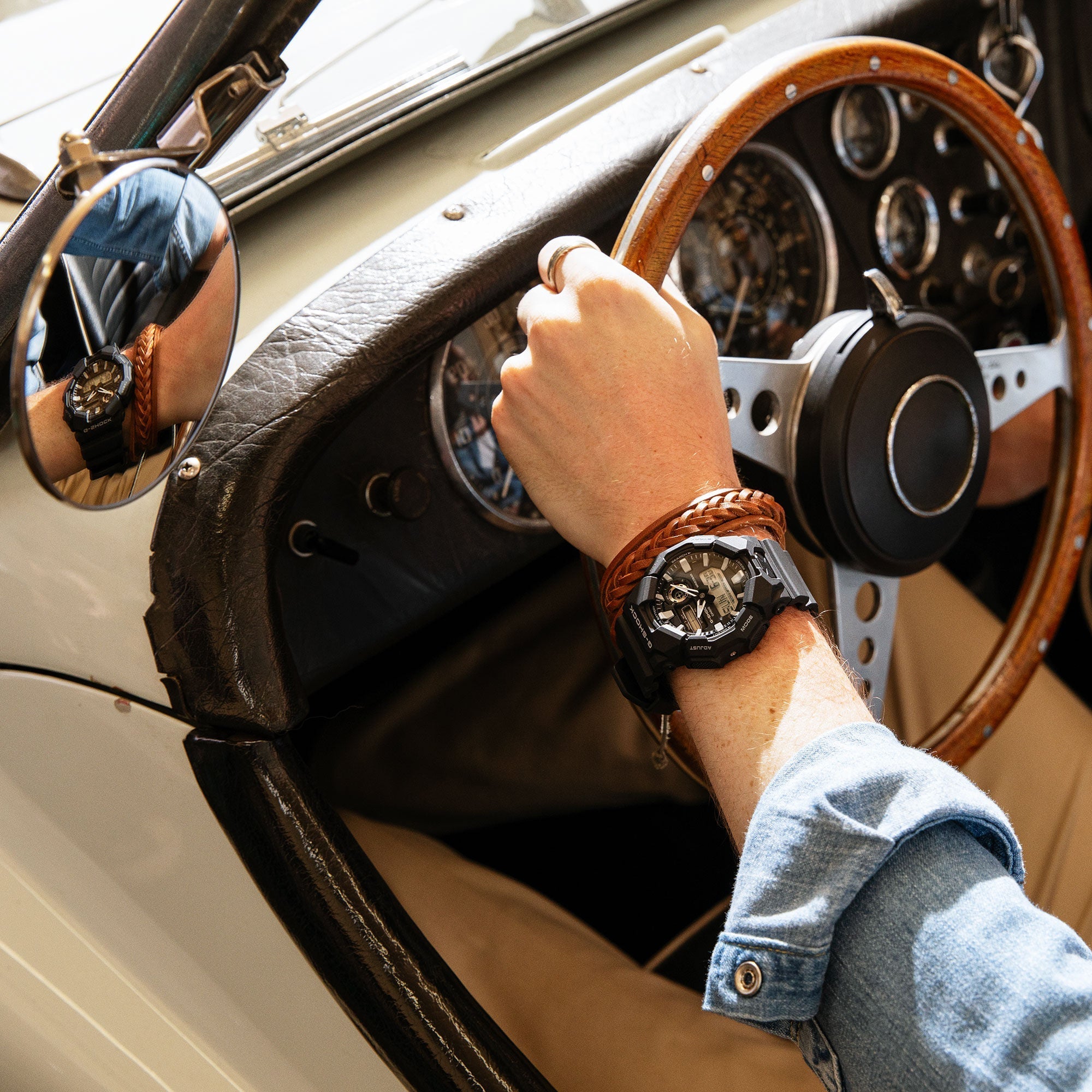 Enjoy a life of fewer battery changes with a large-case G-SHOCK with a 10-year battery you won’t have to worry about for ages. The analog-digital GA-010 delivers handy features like world time and stopwatch, as well as a high-brightness LED light, which can be easily accessed from the large button on front of the case, ensuring visibility even in the dark. Made with bio-based resin and equipped with a 10-year battery, this G-SHOCK is great if you want to reduce environmental impact. Available in a selection of black-based workstyle color schemes for a cool design that moves with ease from casual settings to work situations.