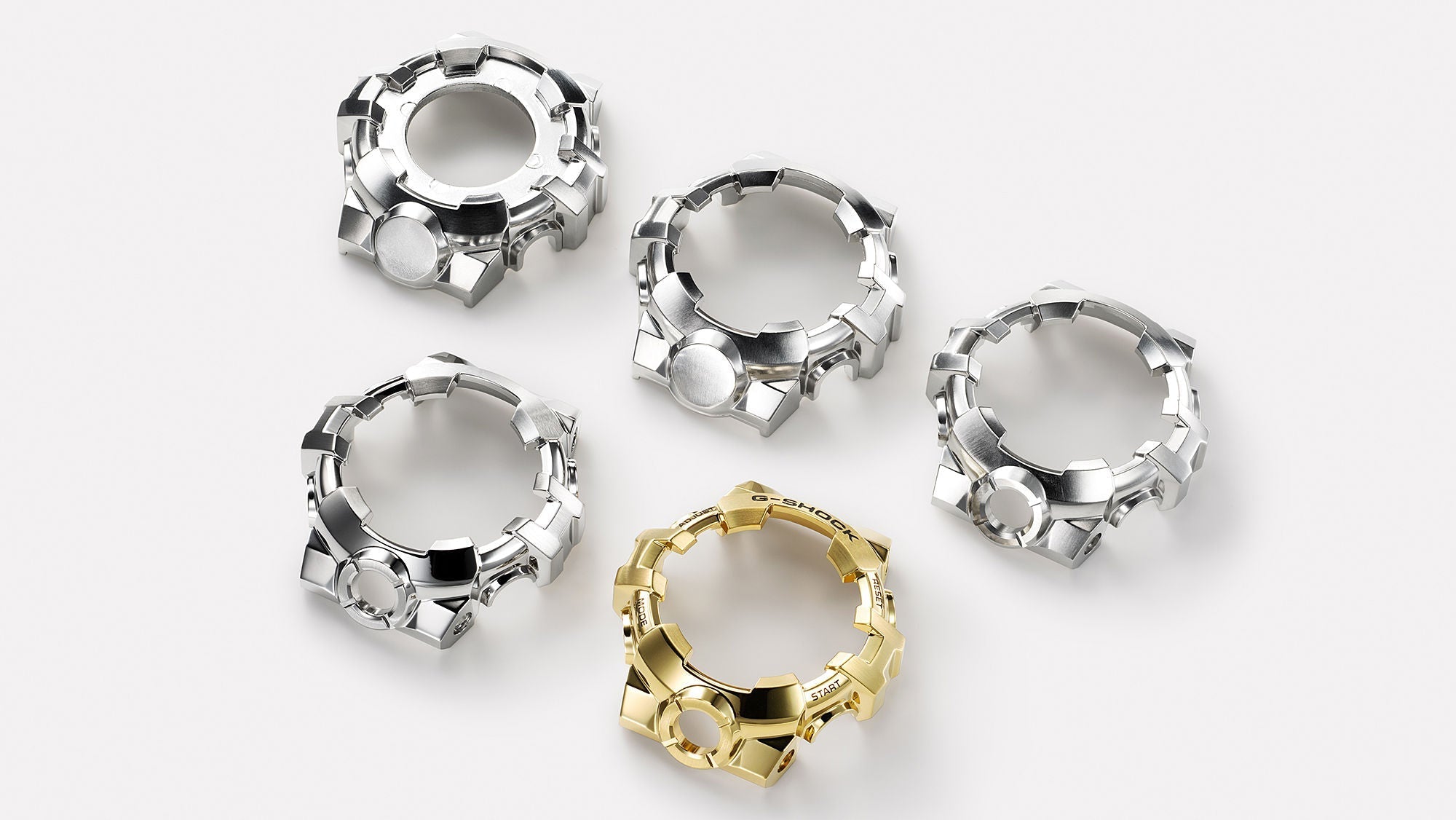 Inheriting the solid, fashionable stainless-steel bezel design of the GM-5600, GM-6900, and GM-110, the GM-700 is based on the GA-700, taking it into all-new terrain with a metal bezel in one of three different colors. The silver and gold color bezels highlight the natural bold look of the metals they project. The striking look of the purple-black bezel is achieved with purple accents against black ion plating.