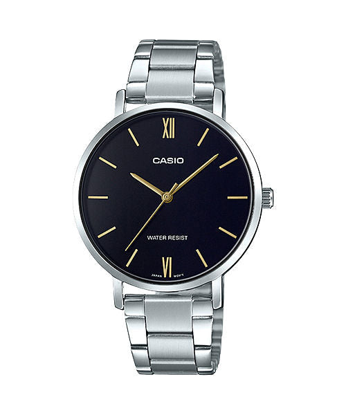 CASIO LTP-VT01D-1BUDF BLACK ANALOG DIAL SILVER STAINLESS STEEL BAND WOMEN'S WATCH A1622