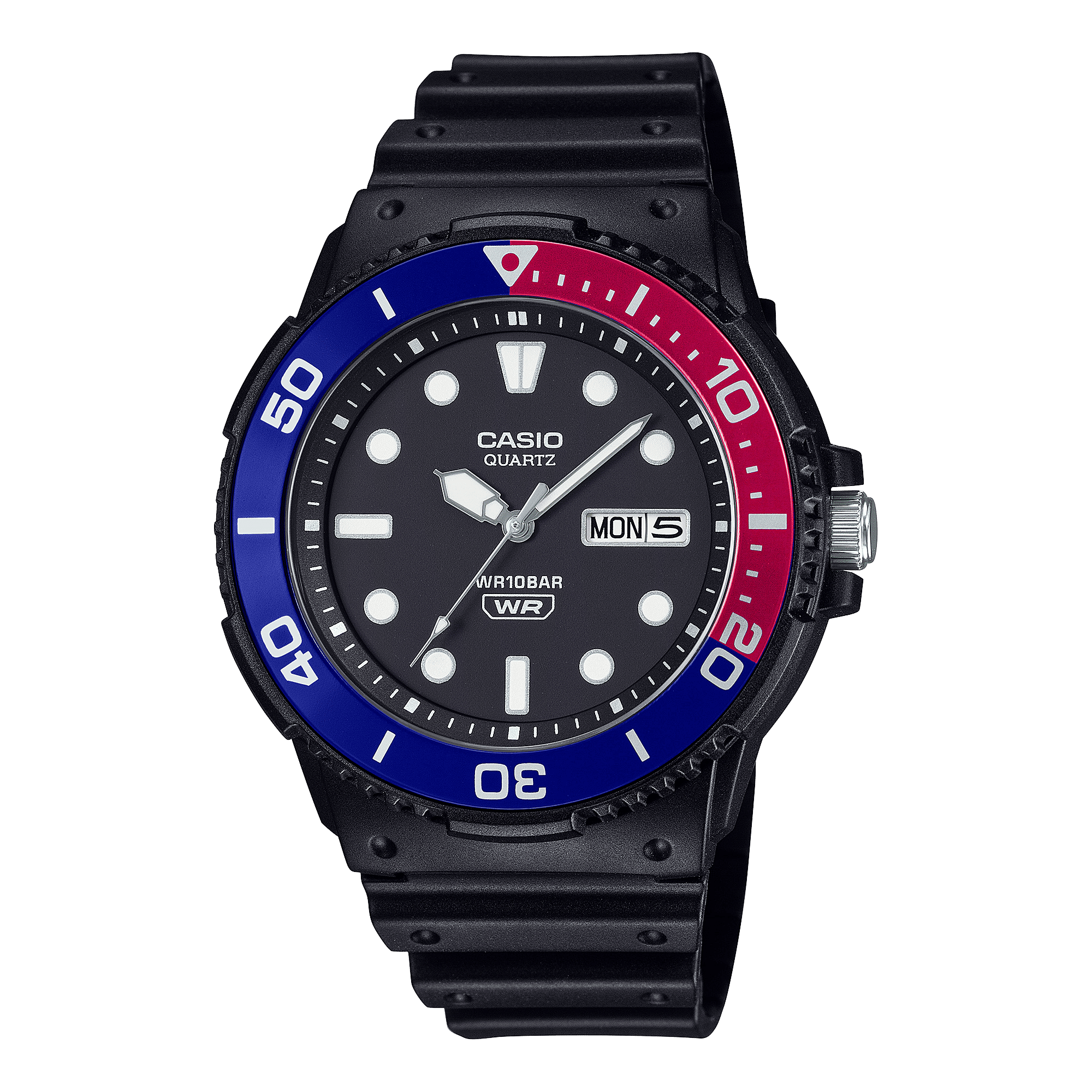 Introducing a marine-inspired analog watch with a rotating bezel.