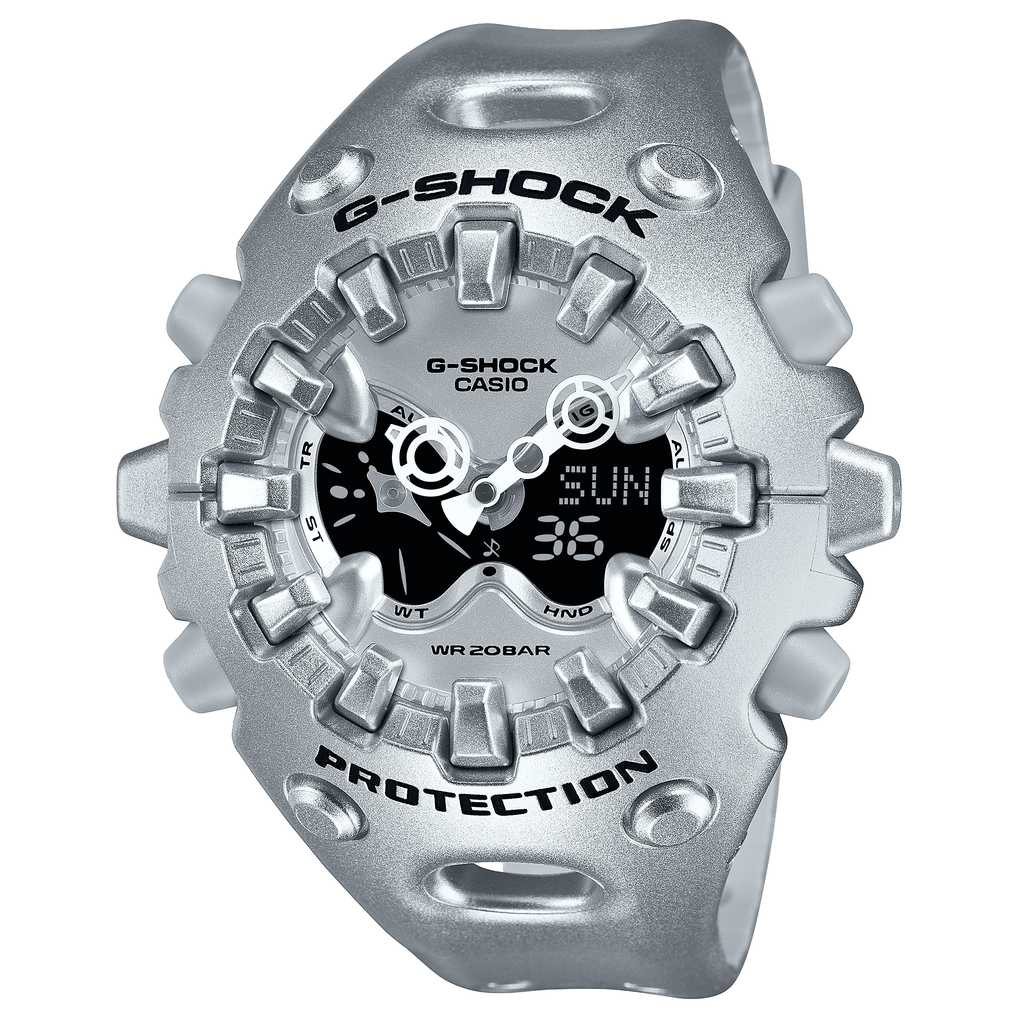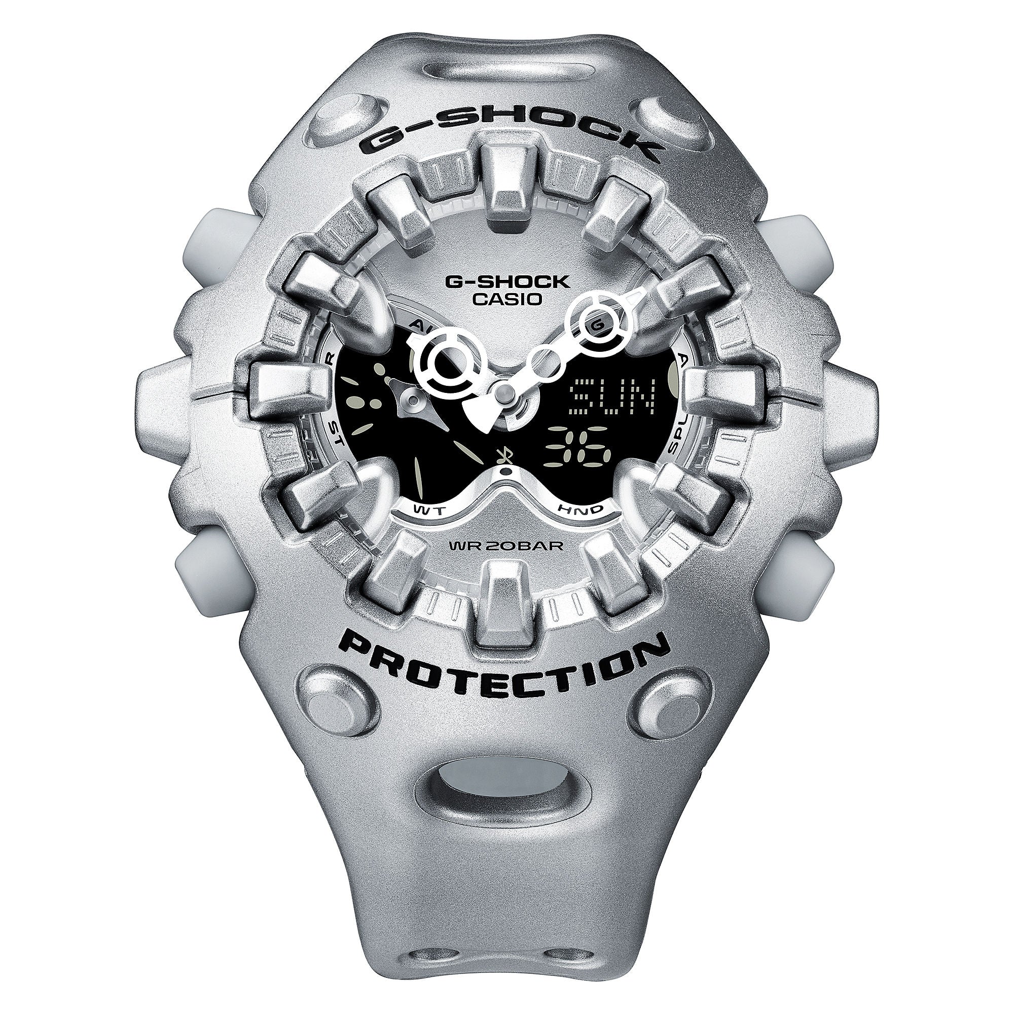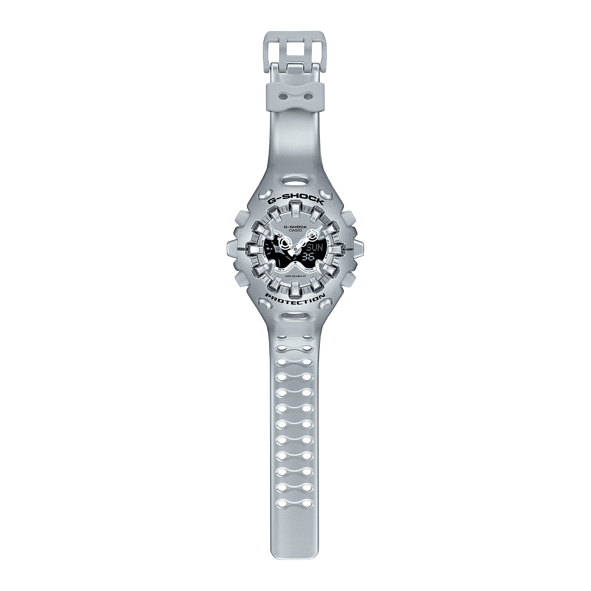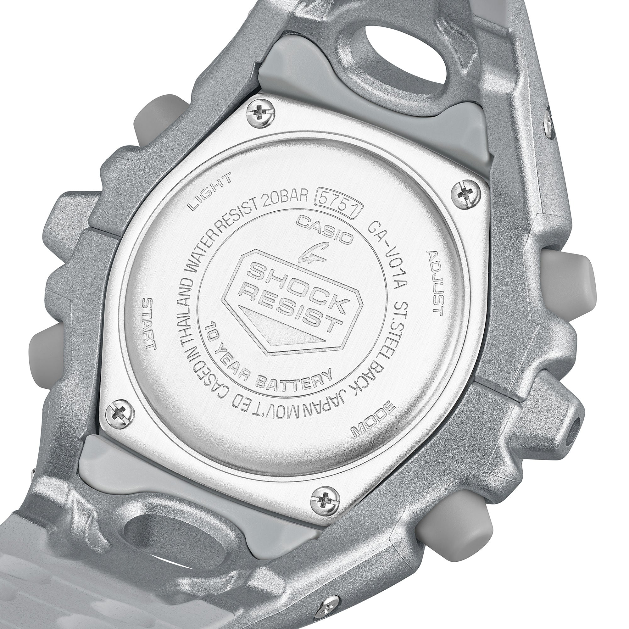Everyone counts on G-SHOCK for unceasing evolution. But check out this comprehensive reinterpretation, representing the G-SHOCK approach to construction and design that powerfully conveys the brand’s unwavering commitment to toughness. The GA-V01 features an exterior with an organic form bringing together components with sharply defined edges, combined with a large, full-screen LCD topped by a metallic dial with openwork and employing the Shock Release Hand, among other features. With its strikingly innovative and original design concept, the GA-V01 exudes G-SHOCK toughness, restating the brand’s never-ending spirit of challenge and commitment to delivering strength.
